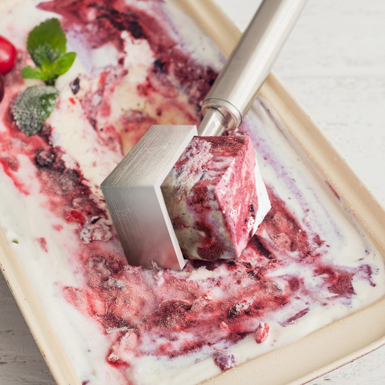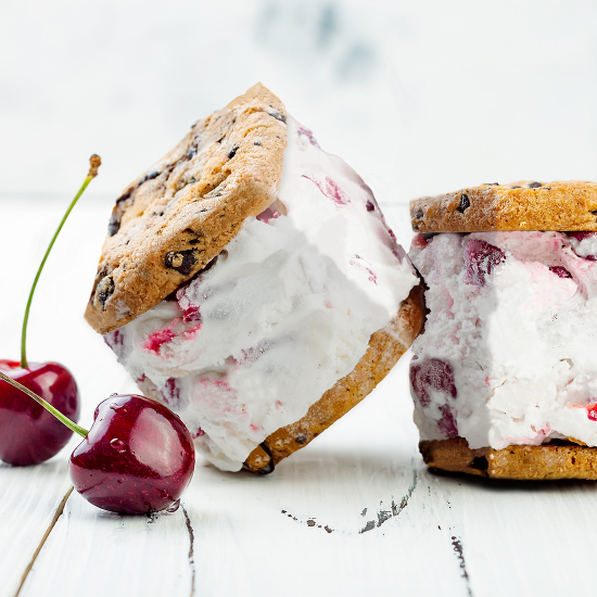 - チェリーアイスサンドは北海道産のチェリーのアイスをサクサクのクッキーでサンドしたスイーツです。立方体なので大量に持ち運ぶときも便利です。